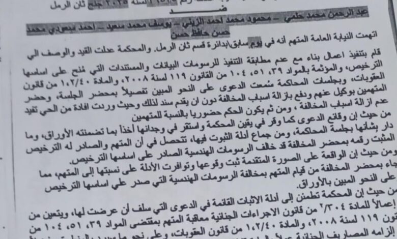وتمت إحالتهم إلي النيابة العسكرية في القضية رقم”5 ” جنح عسكرية والتي أمرت بحبسهم 55 يوماوتم إحالة الاوراق الي محكمة جنح ثان الرمل بالقضية رقم36535 والتي قضت بحبس كل متهم سنه وتغريم كل متهم 500 ألف جنيه مع الشغل .