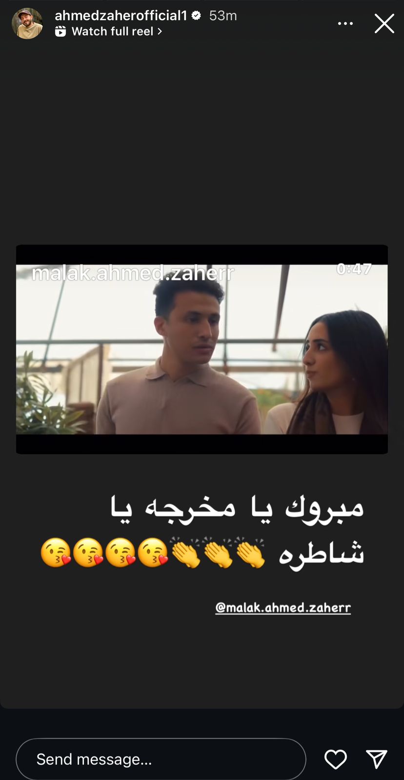 وكتب أحمد زاهر عبر حسابه الشخصي بموقع إنستجرام: “مبروك يامخرجة يا شاطرة“.