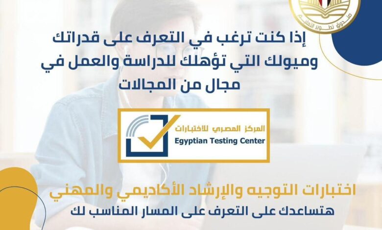 في إطار حرص الدولة المصرية على دعم مسارات التوجيه الأكاديمي والمهني للطلاب، وضمن جهودها لتطوير منظومة التعليم وربطها بمتطلبات سوق العمل، أطلق صندوق تطوير التعليم التابع لرئاسة مجلس الوزراء، اختبارات التوجيه والإرشاد الأكاديمي والمهني لخريجي المرحلتين الإعدادية والثانوية، لمساعدتهم في اختيار أفضل المسارات التعليمية بما يتوافق مع مهاراتهم وميولهم وقدراتهم، وبما يسهم في تحقيق أعلى معدلات النجاح والاستقرار في التعليم الثانوي والجامعي وسوق العمل بعد التخرج، وتأتي هذه الخطوة ضمن مشروع «المركز المصري للاختبارات» أحد مشروعات الصندوق، وتُقدم هذه الاختبارات بشكل مجاني بالكامل للطلاب.