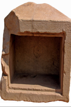 ومن الأمثلة على ذلك ناووس عثر عليه عام 1992 في سايس مركز بسيون بمحافظة الغربية وقد صنع من الحجر الجيري بإرتفاع متر تقريبًا وعرضه أقل بقليل من ذلك ويرجع لعصر الملك ” أحمس الثاني” أحد ملوك الأسرة السادسة والعشرين كما بالشكل: