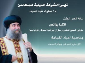 تهنئة من الابن المبارك صفوت عبده نصيف رجل الاعمال وصاحب الشركة الدولية للمطاحن تتقدم بخالص التهنئة لنيافة وقداسة الأنبا يؤانس مطران اسيوط