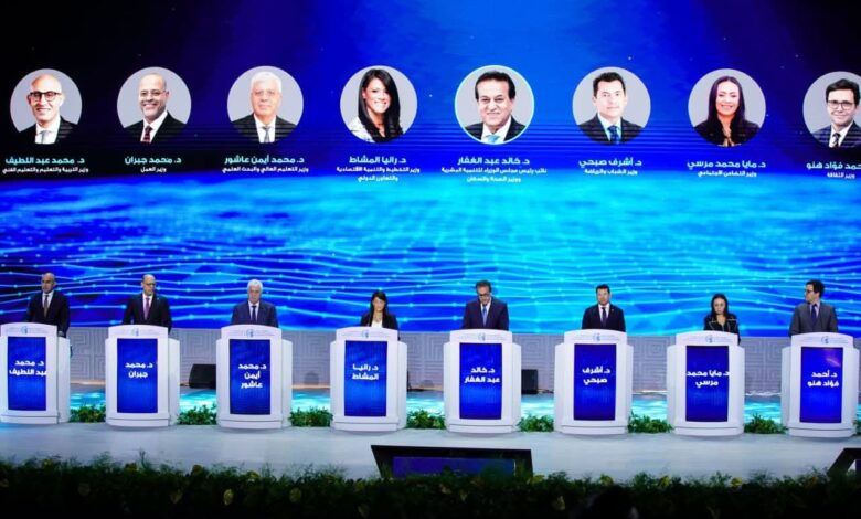 وشهدت الجلسة مشاركة الدكتور خالد عبد الغفار نائب رئيس الوزراء وزير الصحة والسكان، والدكتورة رانيا المشاط وزيرة التخطيط والتنمية الاقتصادية والتعاون الدولي، والدكتور أشرف صبحي وزير الشباب والرياضة، والدكتور أيمن عاشور وزير التعليم العالي والبحث العلمي، والسيد محمد عبد اللطيف وزير التربية والتعليم والتعليم الفني، والدكتور أحمد فؤاد هنو، وزير الثقافة، والسيد محمد جبران وزير العمل، والعقيد دكتور مصطفى الحوشي ممثل الأكاديمية العسكرية المصرية.