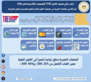 نتائجه لعام 2026، والتي أبرزت تميز الجامعات المصرية في معظم التخصصات الأكاديمية التي شملها التصنيف، فضلًا عن تحقيق زيادة في أعداد الجامعات المُدرجة في العديد من التخصصات مقارنة بنتائج التصنيف للعام الماضي 2025.
