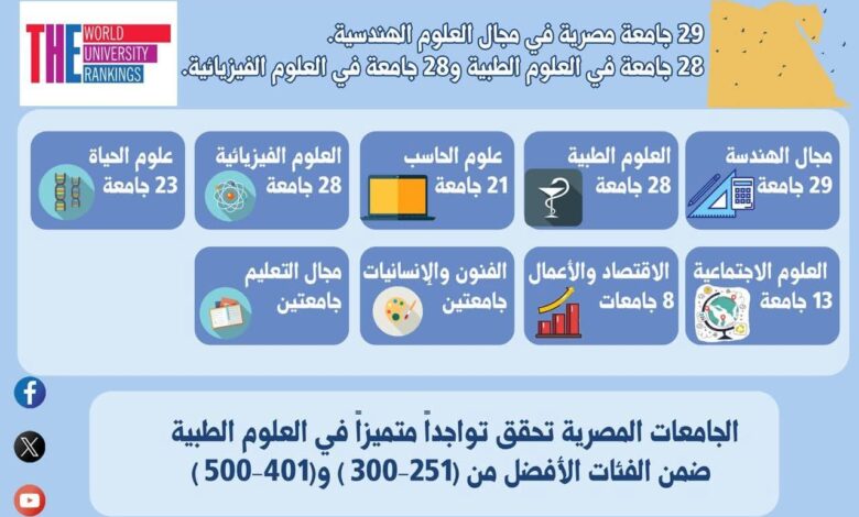 التعليم العالي: إعلان نتائج تصنيف التايمز THE للتخصصات الأكاديمية لعام 2026