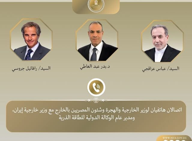 في إطار الجهود المصرية المتواصلة لخفض التصعيد وتعزيز الأمن والاستقرار في المنطقة، جرت اتصالات هاتفية بين د. بدر عبد العاطي وزير الخارجية والهجرة وشؤون المصريين بالخارج وكل من السيد عباس عراقجي وزير الخارجية الإيراني، والسيد رفائيل جروسي المدير العام للوكالة الدولية للطاقة الذرية، لمتابعة مستجدات الملف النووي الإيراني.