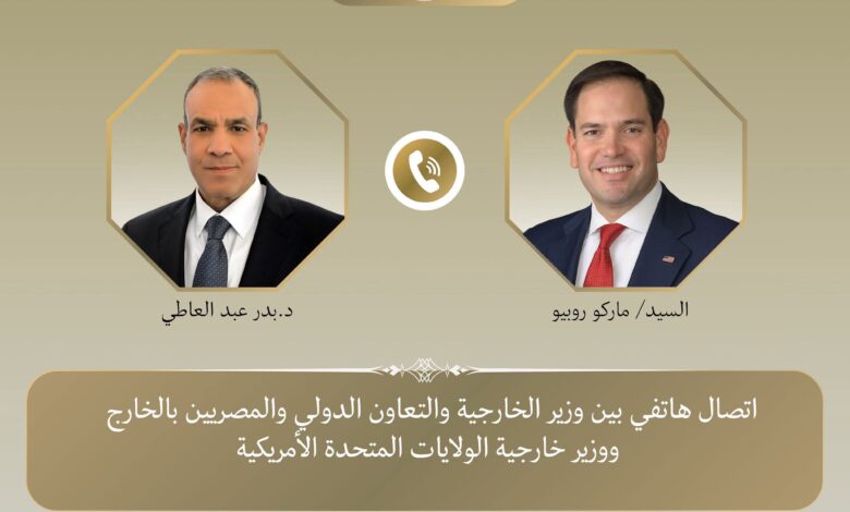 جرى اتصال هاتفي بين د. بدر عبد العاطي وزير الخارجية والتعاون الدولي والمصريين بالخارج مع السيد “ماركو روبيو” وزير خارجية الولايات المتحدة الأمريكية مساء يوم الخميس ٥ مارس،
