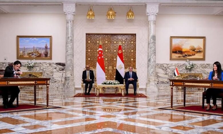 خلال القمة التي جمعت بين السيد الرئيس عبد الفتاح السيسي، رئيس الجمهورية، والسيد/ ثارمان شانموجار أتنام رئيس جمهورية سنغافورة، بقصر الاتحادية، وقّعت الدكتورة رانيا المشاط، وزيرة التخطيط والتنمية الاقتصادية والتعاون الدولي؛ نيابة عن الحكومة المصرية، والسيد/ كونج واي مون، الرئيس التنفيذي لمؤسسة التعاون السنغافورية نيابة عن جمهورية سنغافورة؛ مذكرة تفاهم بشأن تعزيز الشراكة الاقتصادية بين الجانبين.