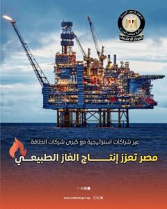 نشر المركز الإعلامي لمجلس الوزراء عددًا من الإنفوجرافات عبر منصاته على مواقع التواصل الاجتماعي، سلط من خلالها الضوء على جهود الدولة لتعزيز إنتاج الغاز الطبيعي عبر شراكات استراتيجية مع كبرى شركات الطاقة.