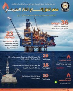 نشر المركز الإعلامي لمجلس الوزراء عددًا من الإنفوجرافات عبر منصاته على مواقع التواصل الاجتماعي، سلط من خلالها الضوء على جهود الدولة لتعزيز إنتاج الغاز الطبيعي عبر شراكات استراتيجية مع كبرى شركات الطاقة.