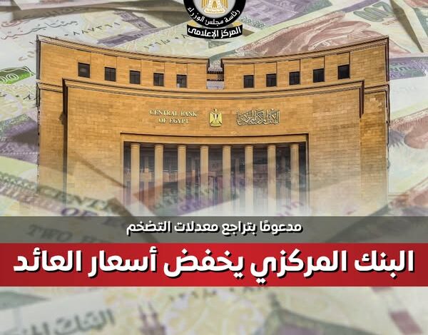 – البنك المركزي يخفض أسعار العائد 200 نقطة أساس مدعومًا بتراجع التضخم