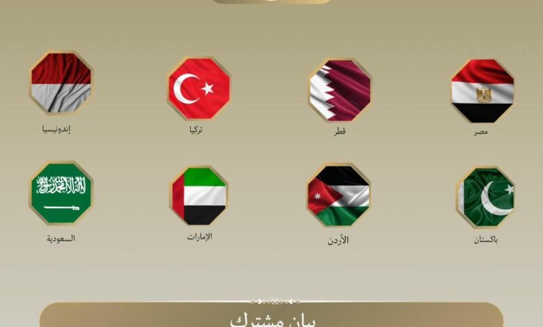 بيان مشترك من وزراء خارجية جمهورية مصر العربية والمملكة الأردنية الهاشمية ودولة الإمارات العربية المتحدة وجمهورية إندونيسيا وجمهورية باكستان الإسلامية والجمهورية التركية والمملكة العربية السعودية ودولة قطر