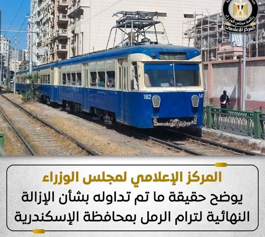 حقيقة ما تم تداوله بشأن الإزالة النهائية لترام الرمل بمحافظة الإسكندرية