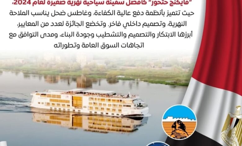 في إنجاز يعكس مساعي مصر للتميز في صناعة وبناء السفن السياحية عالميًا، سفينة “فايكنج حتحور” تفوز بجائزة أفضل سفينة سياحية نهرية صغيرة لعام 2024،