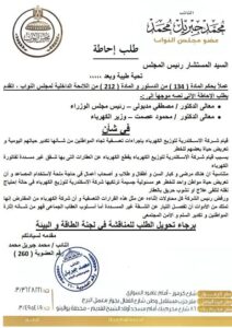 جبريل طلب إحاطة بشأن القرارات التعسفية بقطع الكهرباء من قبل رئيس الشركة