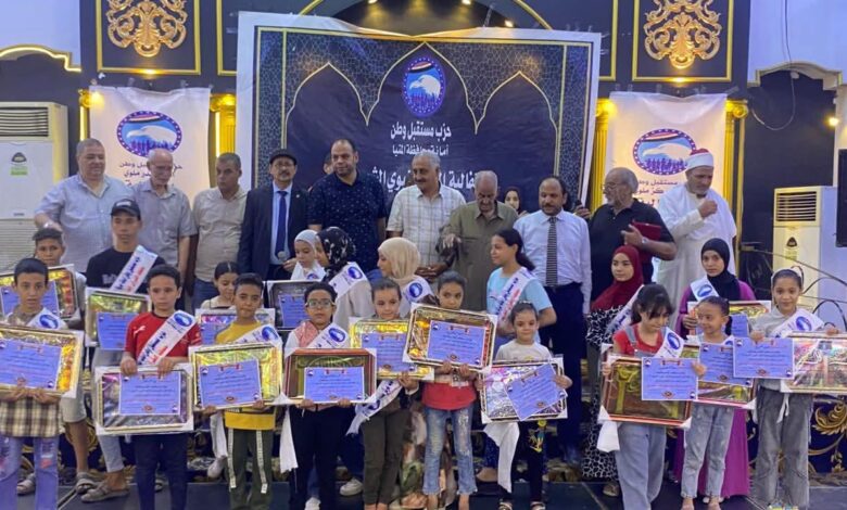 حزب مستقبل وطن يكريم حفظة القرآن الكريم احتفالا بذكرى المولد النبوي الشريف بملوي.