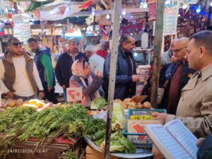 حيث توجهت الحملة لسوق الحضرة القبلية، وتم خلالها متابعة المعروضات من الخضار والفاكهة، اللحوم والدواجن، والتأكد من الاعلان عن جميع الاسعار، كما تم الحديث مع التجار حول ضبط وتخفيض الاسعار خلال الشهر المبارك، لرفع المعاناة عن المواطنين، ومنع التلاعب، والزيادات غير المبررة، والتاكيد علي استمرار الحملات الرقابية.