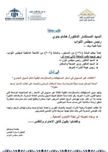 تقدمت دكتورة ساره النحاس عضو مجلس النواب بطلب الإحاطة التالى نصه:-
