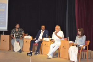 أدار اللقاء الإعلامي والمطرب المعروف أحمد بسيوني، الذي أضفى على الأمسية طابعًا فنيًا وإنسانيًا خاصًا، وفتح حوارًا ثريًا مع الفنان سامح الصريطي تناول فيه مسيرته الفنية الحافلة، ودور الفن كرسالة حقيقية ترتقي بالذوق العام وتحافظ على الهوية الثقافية.