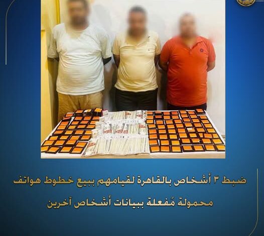 ضبط 3 أشخاص بالقاهرة لقيامهم بيبيع خطوط هواتف محمولة مفعلة ببيانات أشخاص اخرين
