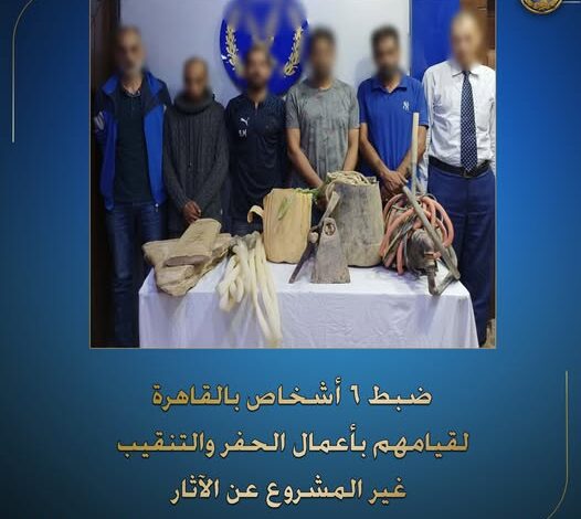 ضبط 6 اشخاص بالقاهرة لقيامهم بأعمال الحفر والتنقيب غير المشروع عن الآثار