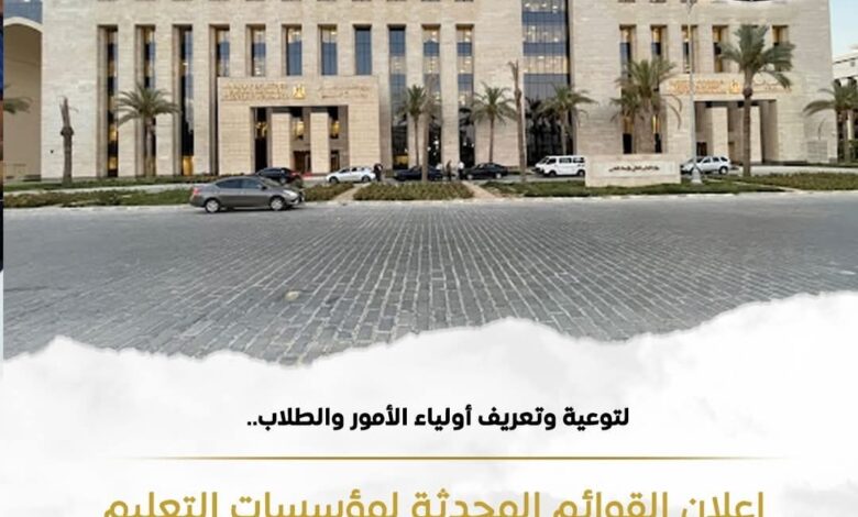 التعليم..لتوعية اولياء الامور والطلاب اعلان القوائم المحدثة لمؤسسسات التعليم العالي المعتمدة بجمهورية مصر العربية