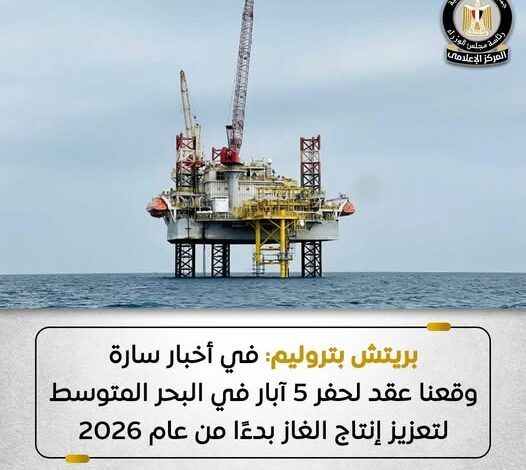 توقيع عقد لحفر 5 آبار جديدة للغاز بالبحر المتوسط بين شركتي بي بي البريطانية وفالاريس