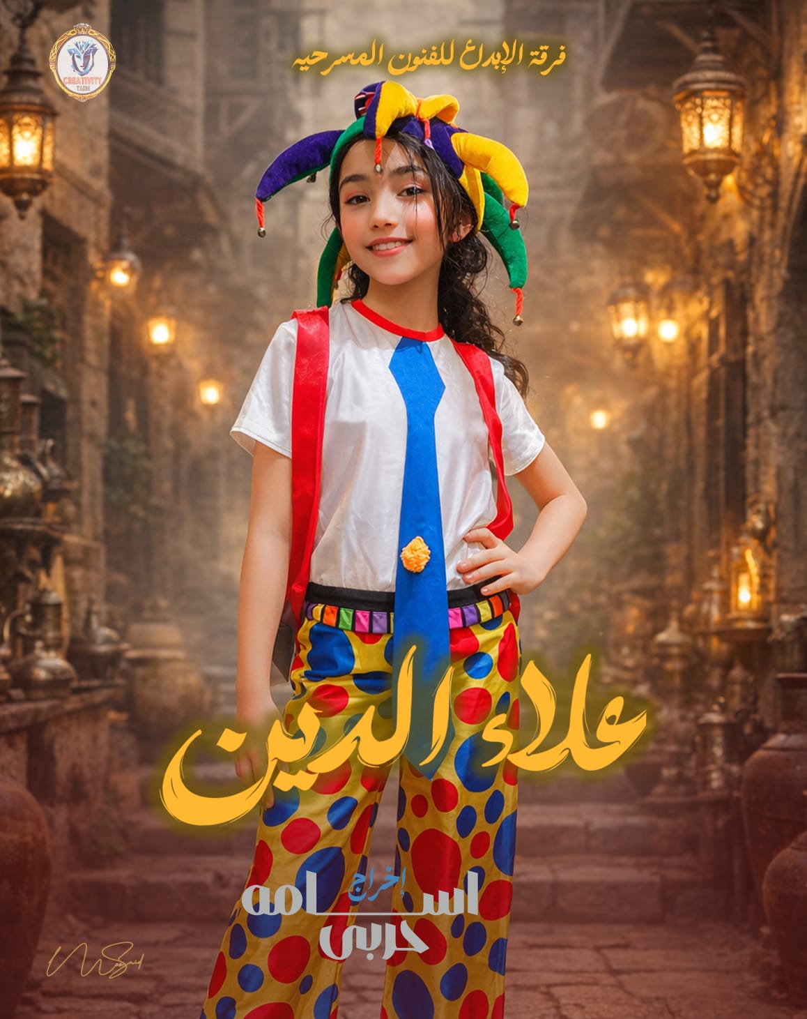 العمل من تأليف رمضان الشهاوي، وإخراج وبطولة أسامه حربي، ويستعيد أجواء الحكاية الخالدة بروح جديدة تعتمد على الإيقاع السريع والاستعراضات الحركية والأغاني، ليقدم صراعًا دراميًا واضح المعالم بين الخير الذي يمثله علاء الدين، والشر الذي يتجسد في جعفر والساحرة.