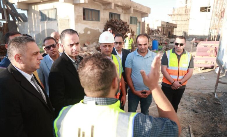 داخلي، و21 سرير رعاية مركزة، و5 غرف عمليات، و19 حضانة، و34 ماكينة غسيل كلوي. ووصلت نسبة التنفيذ إلى 50%، مع التسليم المقرر في سبتمبر 2026، مشدداً على ضرورة تسريع أعمال الإنشاء وتقديم موعد التسليم.