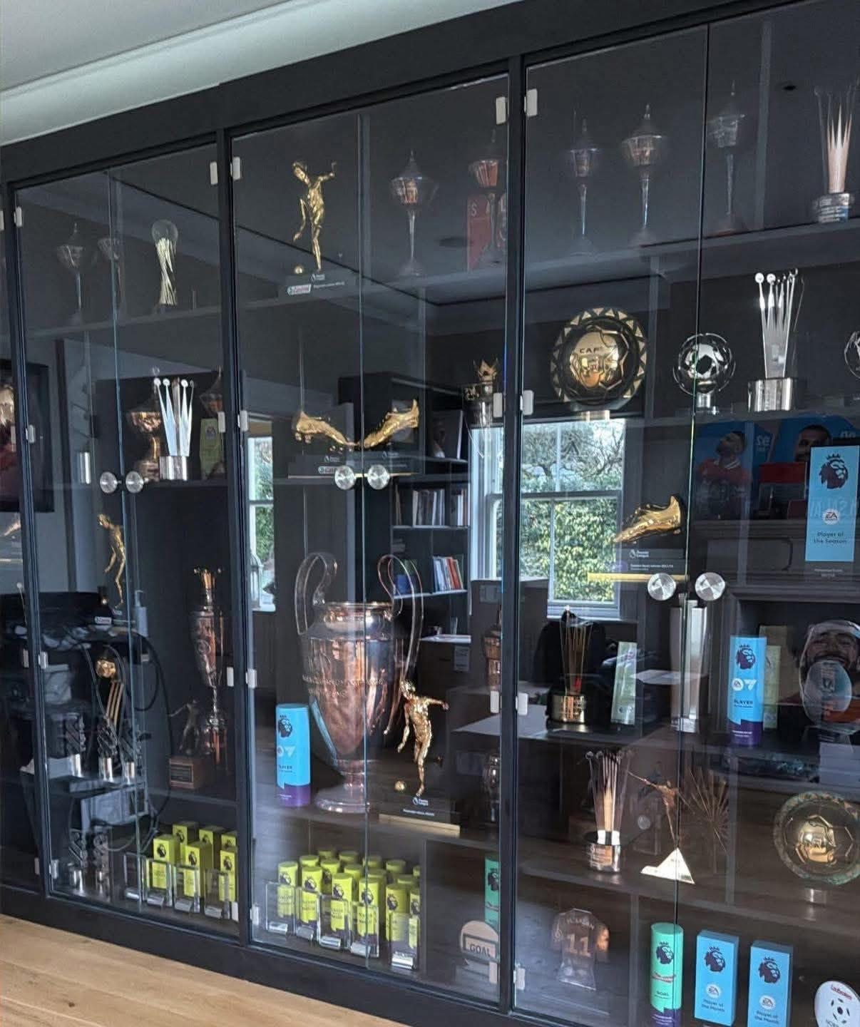 وظهرت في الصورة خزانة بطولات محمد صلاح، التي تضم عددًا كبيرًا من الكؤوس والميداليات الفردية والجماعية، في لقطة لاقت تفاعلًا واسعًا من الجماهير، وأعادت تسليط الضوء على مسيرة اللاعب الحافلة مع “الريدز”.