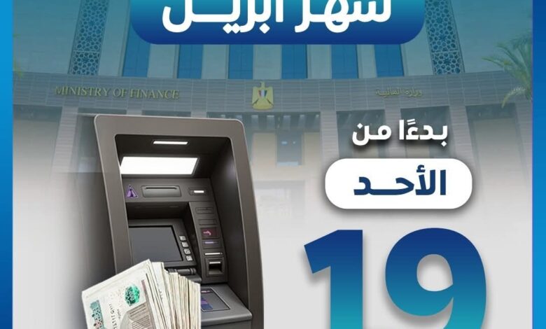 أعلنت وزارة المالية أن صرف مرتبات شهر أبريل الجاري للعاملين بالجهاز الإداري للدولة سيبدأ اعتبارًا من يوم الأحد الموافق 19 أبريل.