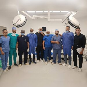 وقد ضم الفريق الطبي الذي أجري العملية كل من، الدكتور خالد محمد سعيد رئيس قسم جراحة العظام، والدكتور أحمد محمد جمال أخصائي جراحة العظام، والدكتور حسام الدين رجب أخصائي التخدير، وأ. محمد الهم فني التخدير، بمشاركة الطاقم التمريضي بقيادة أ. نصر محمود السيد مشرف اليوم، وفريق التمريض الذي ضم مصطفى محمد عبد العال، ليلى عبد الفتاح، ياسمين سعد الدين، رانيا عبد اللطيف، هناء سعد، رحاب عبد الناصر، ورحاب محمد.