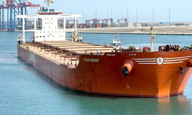 ميناء شرق بورسعيد يستقبل السفينة MV PAROSHIP أكبر سفينة صب جاف ترسو في ميناء مصري على رصيف محطة “سكاي بورتس”