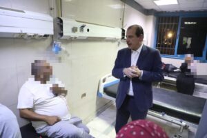 وأسفر المرور عن تزاحم المرضى والمواطنين بقسم (الطوارئ والاستقبال) ووجود بعض الأجهزة المعطلة بالقسم، و في (طوارئ الباطنة) تبين وجود حالات تحتاج الى حجز بالقسم الداخلي وتلاحظ عدم اتخاذ الإجراءات الطبية اللازمة، وتلاحظ قلة عدد التمريض وكثافة الحالات بالقسم، ووجه نائب الوزير الأخصائيين بإعادة تشخيص الحالات الموجودة بالقسم ، واستمع الى شكاوى بعض المرضى و على الفور أمر باتخاذ اللازم لحجز المرضى و استكمال الفحوصات الطبية وصرف العلاج المناسب، وأيضا تبين خلال الزيارة وجود حالة تعاني من كسر بالساق (طوارئ جراحة وعضام) ترددت على القسم أكثر من مرة دون اتخاذ الاجراء اللازم و على الفور أمر باتخاذ الاجراء الطبي اللازم لها .