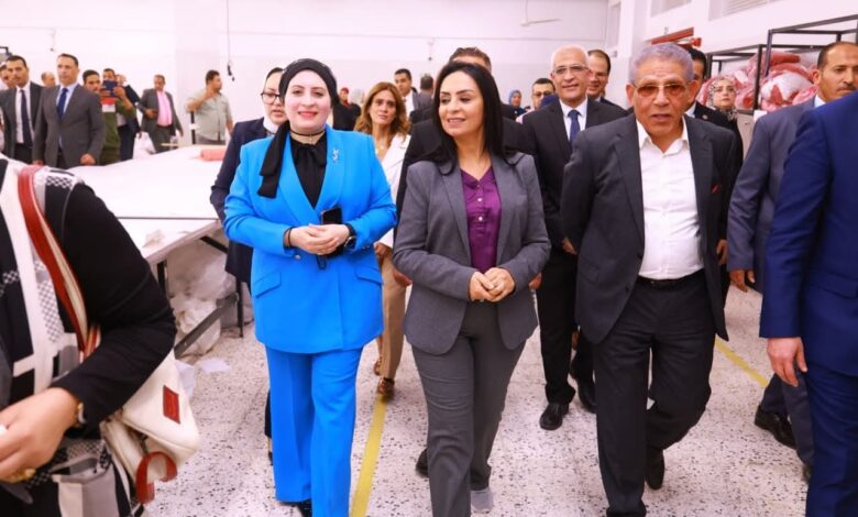 وزيرة التضامن الاجتماعي ومحافظ الفيوم يتابعان المشروعات الإنتاجية لمصنع الغزل والنسيج بقرية العزب.. ويتفقدان حضانة أبناء العاملات بالمصنع