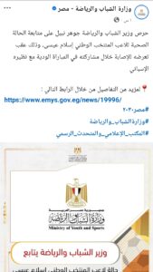 وأكد وزير الشباب والرياضة تقديم كافة أوجه الدعم للاعب، مشددًا على حرص الوزارة على متابعة جميع عناصر المنتخبات الوطنية وتوفير الرعاية الطبية اللازمة لهم، بما يضمن عودتهم السريعة إلى الملاعب.