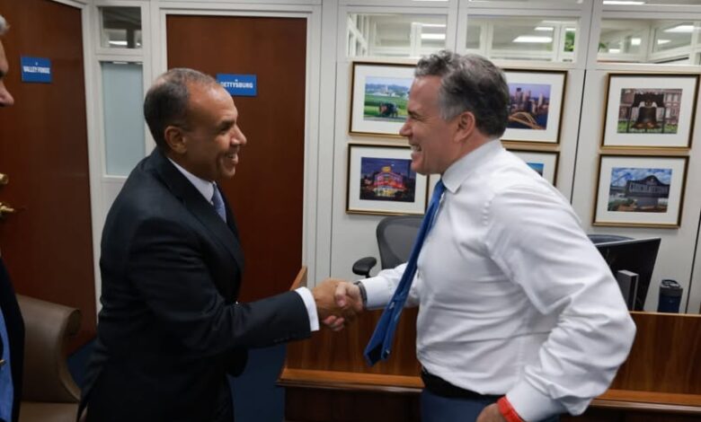 وزير الخارجية والهجرة يلتقي السيناتور “ديفيد ماكورميك” رئيس اللجنة الفرعية للعلاقات الخارجية المعنية بالشرق الأوسط ومكافحة الإرهاب بمجلس الشيوخ الأمريكي