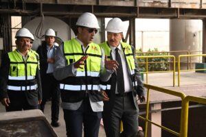 ثم تفقد الوزير مصنع حديد عز بالعين السخنة التابع لمجموعة حديد عز والمقام على مساحة 3 مليون متر مربع برأس مال يبلغ 6.5 مليار جنيه وتبلغ الطاقة الإنتاجية للمصنع 2.2 مليون طن سنويًا، وتوفر المجموعة أكثر من 10 آلاف فرصة عمل مباشرة وأكثر من 10 أضعاف هذا العدد فرص عمل غير مباشرة، وقد بلغت صادرات المجموعة مليار دولار عام 2025 من منتجات (ألواح الصلب المسطح ـ حديد تسليح)، وقد كان في استقبال الوزير السيدة/ عفاف أحمد عز رئيس قطاع تطوير الاعمال بالمجموعة والأستاذ/ علاء أبو الخير نائب رئيس مجموعة عز الصناعية، وخلال الزيارة تفقد الوزير مصنع الاختزال، ومنطقة الأفران والماكينات، ومراحل درفلة الصلب المسطح وصولاً للمنتج النهائي.