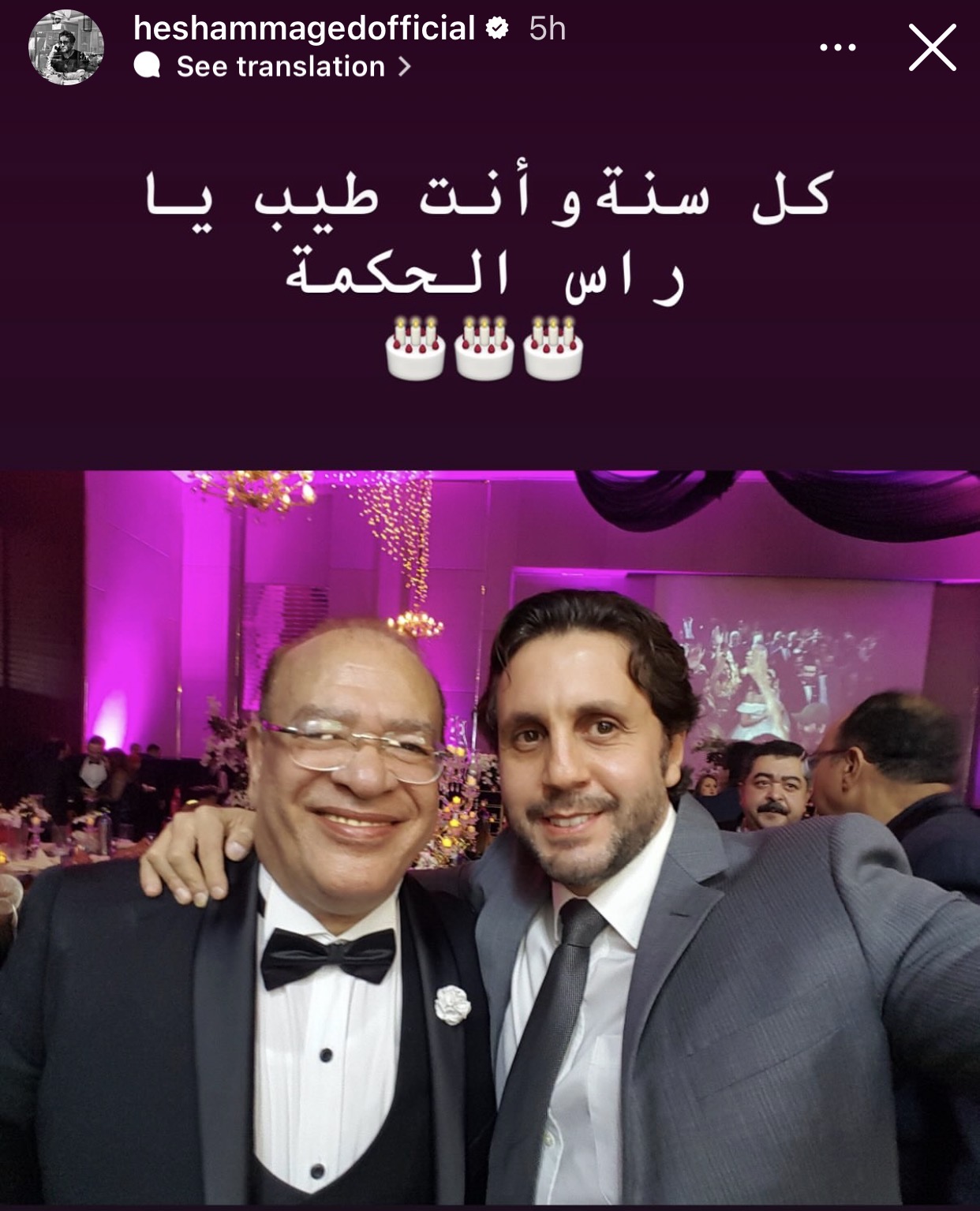 ونشر هشام ماجد صورة تجمعه بصلاح عبدالله عبر حسابه الشخصي بموقع إنستجرام وعلق عليها قائلاً: “كل سنة وأنت طيب يا رأس الحكمة”.