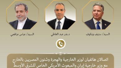 اتصالات لوزير الخارجية مع وزير خارجية إيران والمبعوث الأمريكي الخاص للشرق الأوسط لبحث التطورات الإقليمية وخفض التصعيد