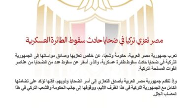 مصر تعزي تركيا في ضحايا حادث سقوط الطائرة العسكرية